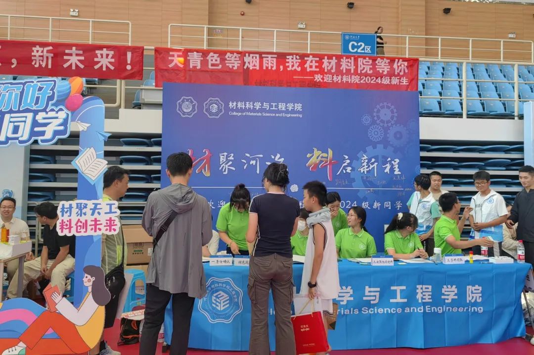 从引导牌的设置、桌椅的摆放,到迎新资料的整理、咨询台的布置,每一个细节都体现着学院对新生的重视和关怀。志愿者们更是热情洋溢,以饱满的精神状态迎接每一位新生的到来,展现出材料院学子的热情与活力。