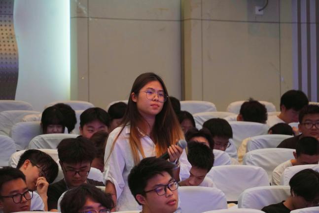 刘冠国校友从“三个转变”讲起,建议同学们步入大学后要完成“目标的转变、精力分配的变化、学习方法态度的转变”,通过详细形象的讲述为学弟学妹们勾勒出清晰的成长路径;尚于杰校友结合自身大学本科阶段的学习经验,向同学们强调了专业课、公共课等课程学习的重要性,并以自身跨行业就业的经历鼓励大家明确目标、积极参与社会实践、以乐观的心态去规划自己的人生;徐晨毓校友以自己13年在4家不同类型的企业工作的经历,鼓励同学们走出舒适区,拥抱未来。