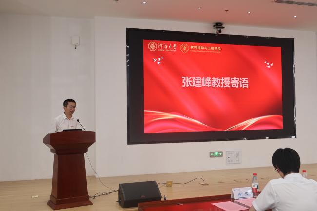 教师代表、教授、博士生导师张建峰在典礼上勉励新生以德立身、踏实做事、勤奋治学,尽快适应研究生新阶段张教师强调,研究生的三年充满无限的可能,新生一定要利用学院提供的资源,不断提升自我学术能力,学习科研技能,不断求索,力争在未来的学术道路上取得优异成果。