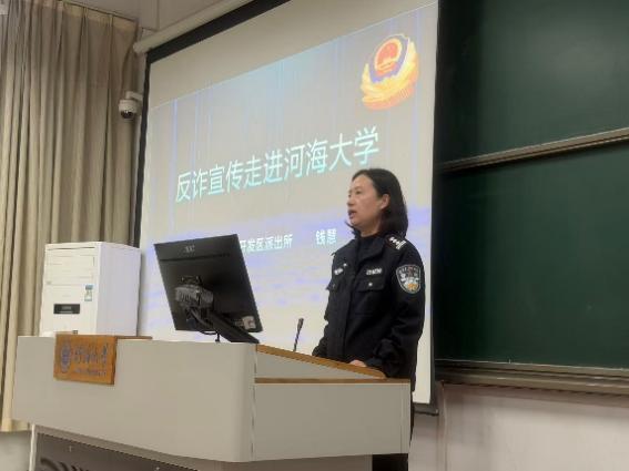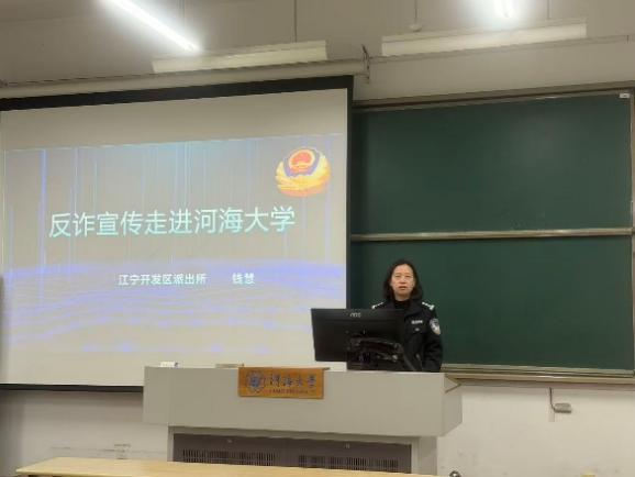 为切实提升在校学生的反诈防诈意识和自我保护能力,有效遏制校园诈骗案件的发生, 11月17日,加勒逼 特邀南京市江宁开发区派出所民警钱慧走进校园,为2022级在江宁校区全体本科生带来了一场内容详实、案例鲜活的反诈骗主题宣讲活动。
