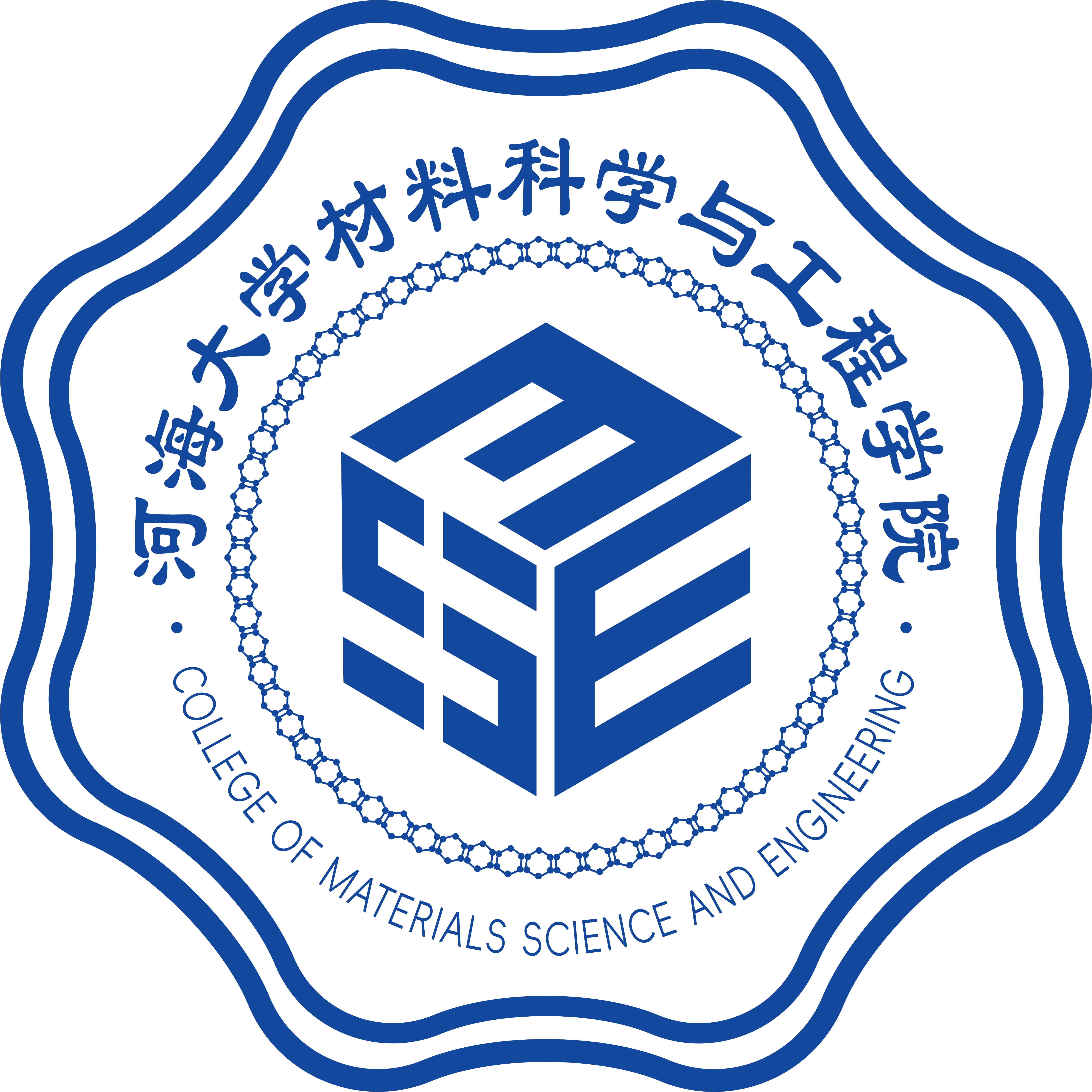 加勒逼 (College of Materials Science and Engineering , Hohai University) 徽标,由加勒逼 徽标“梅花“”河海蓝“等代表性元素、学院中英文名称全称和材料科学与工程(Materials Science and Engineering)英文简称“MSE”、纳米结构环、大禹治水的工具“耒耜”等关键元素组成。梅花形外廓与加勒逼 徽标一脉相承,既代表了学院的发展脉络,又形似波浪,代表了涉水材料的学科特色。内圈采用金属材料有序化构造的纳米环状结构图型,体现河海材料学科在结构调控与表征等方面的特色优势。Materials Science and Engineering(材料科学与工程)的首字母字母M、S、E组成立方晶胞造型。利用字符M和S造型内嵌治水英雄大禹使用的工具——“耒耜“,链接传统与现代,表明河海材料人以科技创新为器参与教育强国、科技强国、人才强国、材料强国建设的自觉担当。